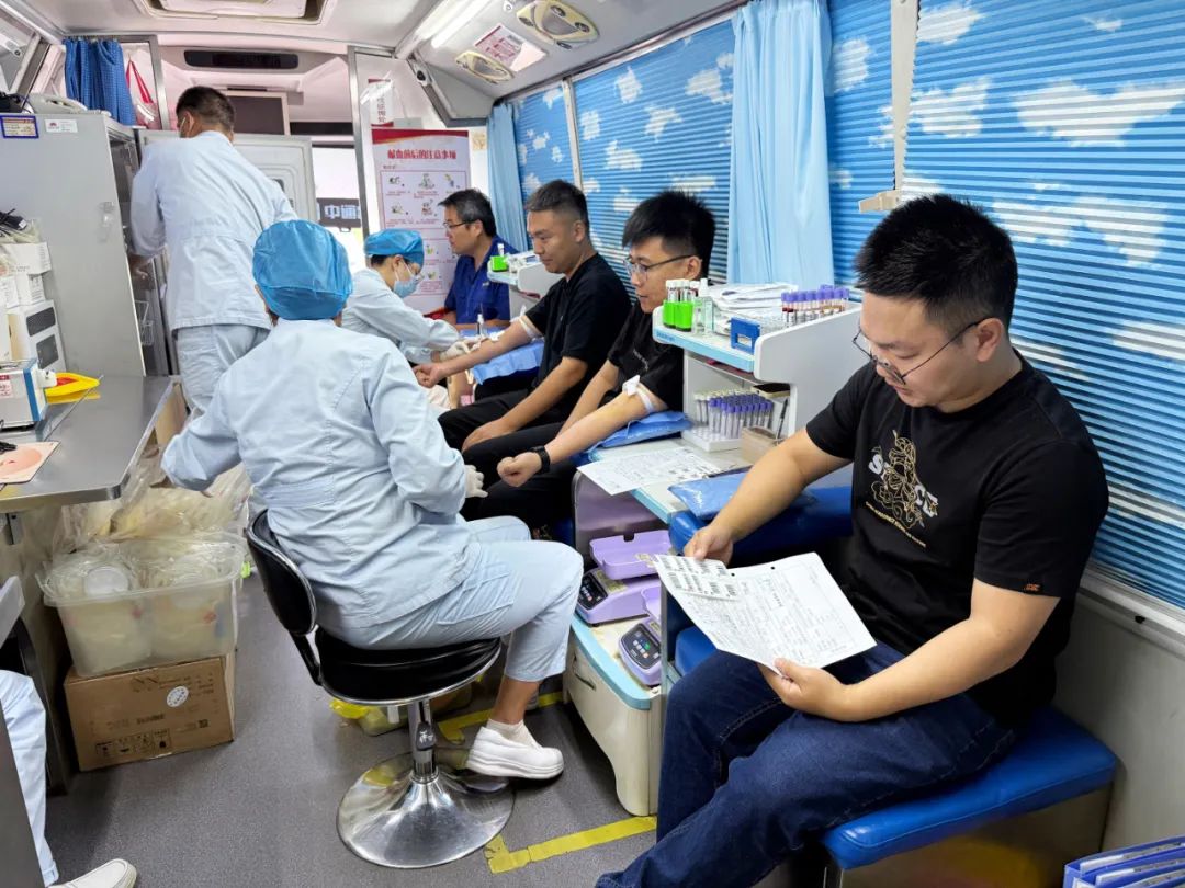 午后兩點(diǎn)的陽(yáng)光灑滿園區(qū),采血車的影子被拉得很長(zhǎng),宛如一條連接企業(yè)與社會(huì)的生命紐帶。職工們?cè)谝龑?dǎo)下依次完成登記、健康征詢與血液檢測(cè),流程間的默契配合,恰似一場(chǎng)排練已久的愛心協(xié)奏曲。隊(duì)伍中,技術(shù)中心的汪衍賡、營(yíng)銷中心的王智、制造中心的吳杰、綜合辦公室的邱亮等幾位“獻(xiàn)血老兵”正從容地做著采血前的準(zhǔn)備。采血過程中大家有說有笑,手臂上深淺不一的針孔痕跡,猶如一枚枚閃耀著光芒的榮譽(yù)勛章,無(wú)聲地訴說著他們的奉獻(xiàn)故事。
